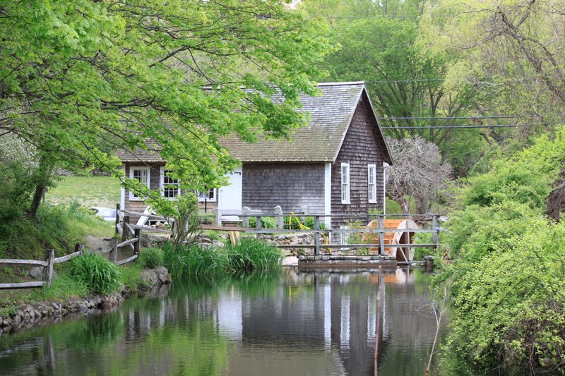 I had lunch with Demi and her friend Jackie at the Brewster Fish House, another place I can highly recommend where I had the codfish cakes. DH met us for coffee and after some lovely conversation we parted ways. In DH's travels someone had told him we needed to go to the Stony Brook Grist Mill and Museum. Now, the museum was closed for renovations, and when we parked the car and got out we heard this unholy racket.