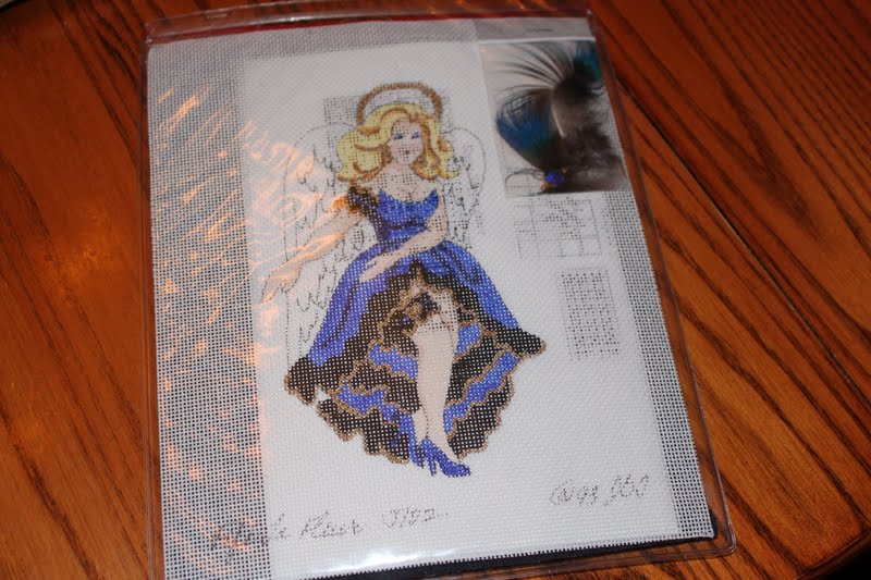 We when got home I had received my package from Canvases Be Gone. Thanks to Jane of Chilly Hollow, I had gone there last week to peruse the new canvases and found a Joan Thomasson angel that I had to have. I bought Joan's Merry Widow in New Orleans. And now I have Fifi LaFleur.