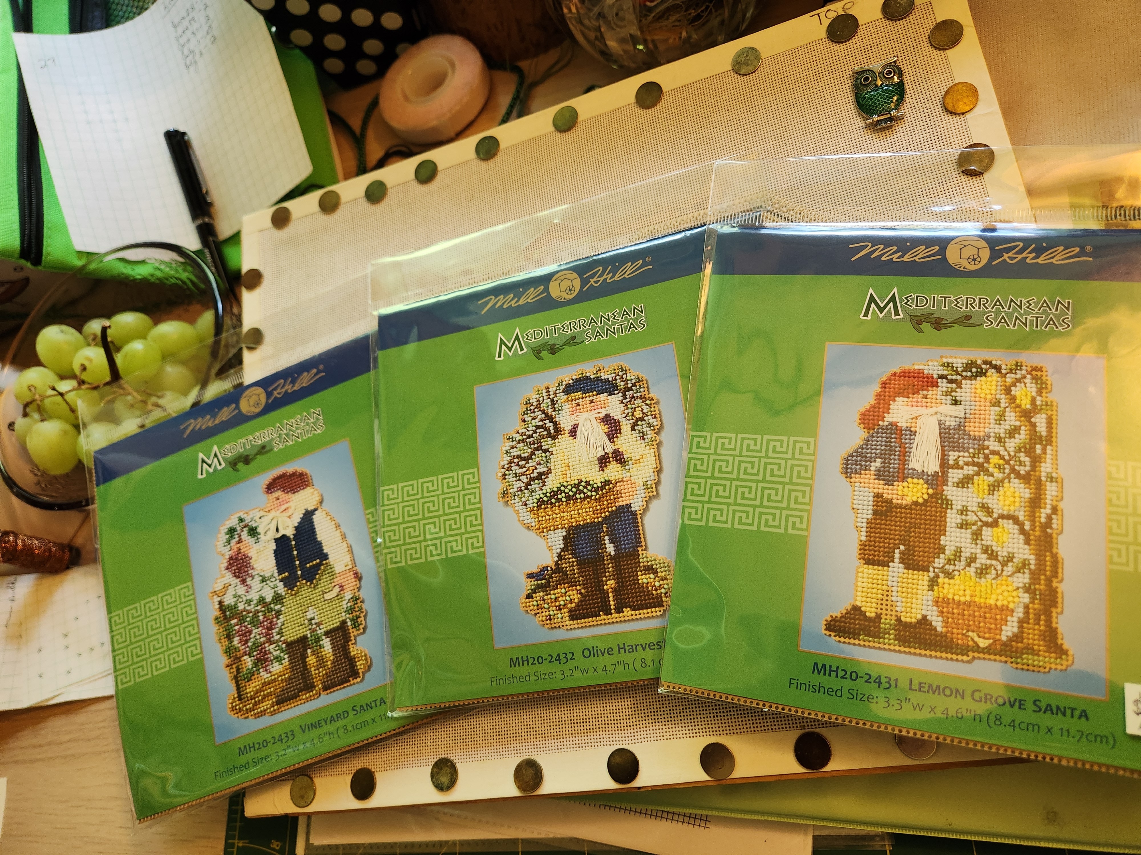 I picked up another UFO. Janet Zickler Casey's Who Dat? Did two pieces of hers with NOVA ANG a long time ago. Moon Pie Kitty was finished long ago.